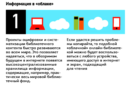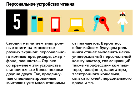 5) Персональное устройство чтения. А причем здесь библиотека? Полосатая ее в качестве адаптационно-обучающего центра, учат же сегодня в библиотеках компьютерной грамотности!